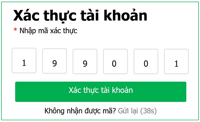 Sau khi đăng ký tài khoản, nhấn Xác thực ngay để hệ thống gửi mã xác thực OTP qua điện thoại để xác thực số tài khoản đăng ký. Thí sinh có 10 phút để nhập mã xác thực, trường hợp không nhận được mã nhấn Gửi lại .