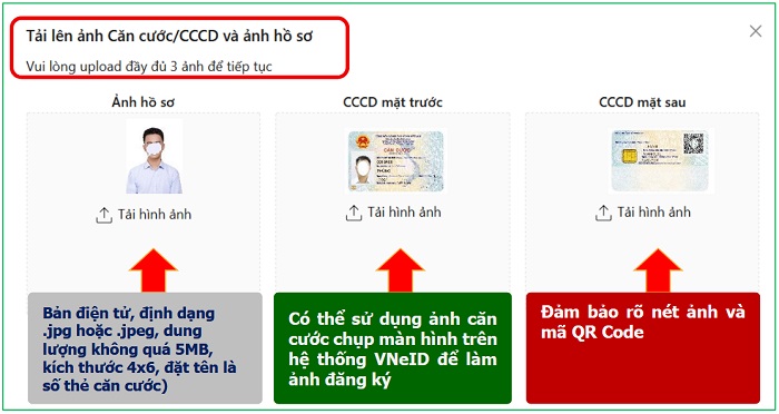 Trong trường hợp sau khi bạn đã tải đầy đủ ảnh thẻ căn cước 2 mặt lên mà hệ thống không thể quét thông tin QR code. Bạn cần thử lại với ảnh nét hơn.