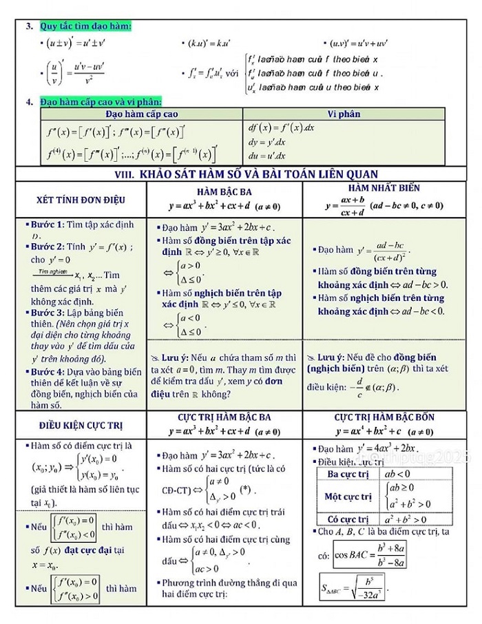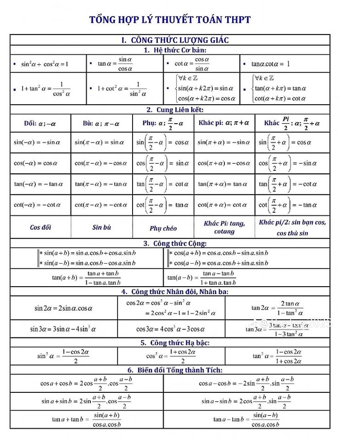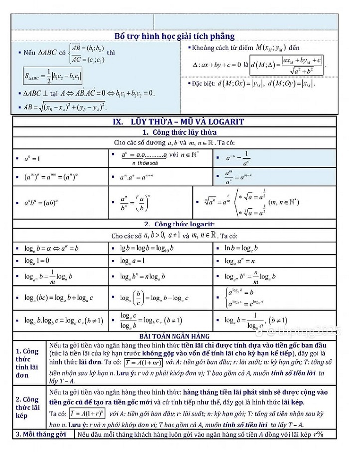Xin gửi tới thí sinh trọn bộ công thức Toán THPT cần thiết cho quá trình ôn thi tốt nghiệp THPT dưới đây để tham khảo.